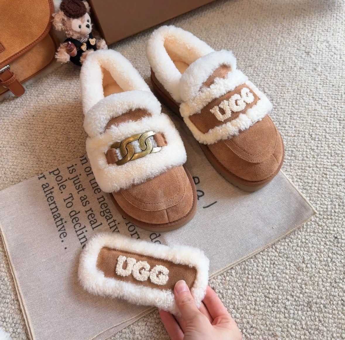 UGG Auspecial 可拆式厚底小胖丁,將保暖與造型感完美結合。可依穿搭自由更換配件,從甜美可愛到俐落時髦,一雙即可完成多種秋冬造型。厚底比例修飾腿型,同時兼顧舒適與穩定度,是秋冬實穿度極高的百搭款式。